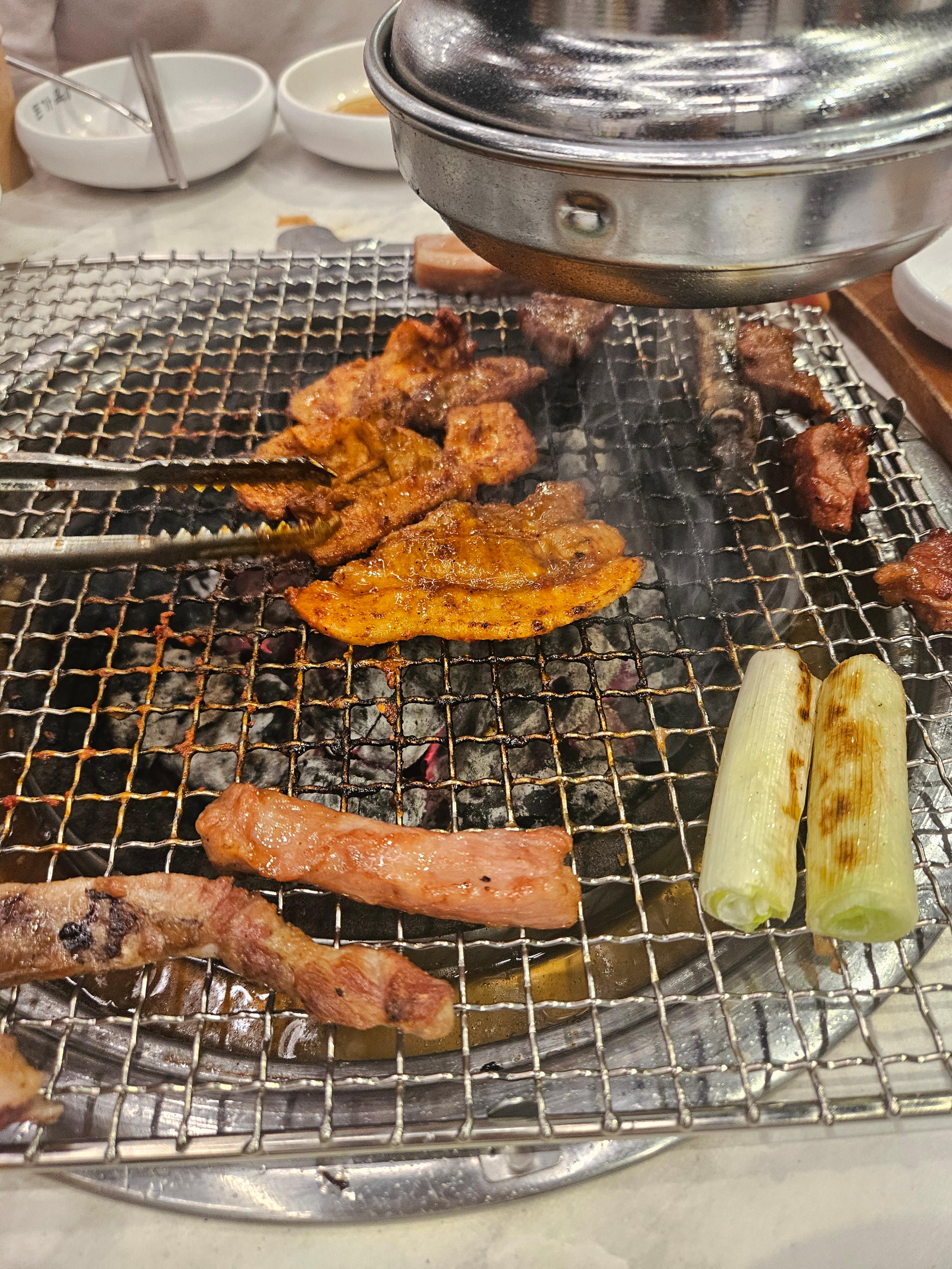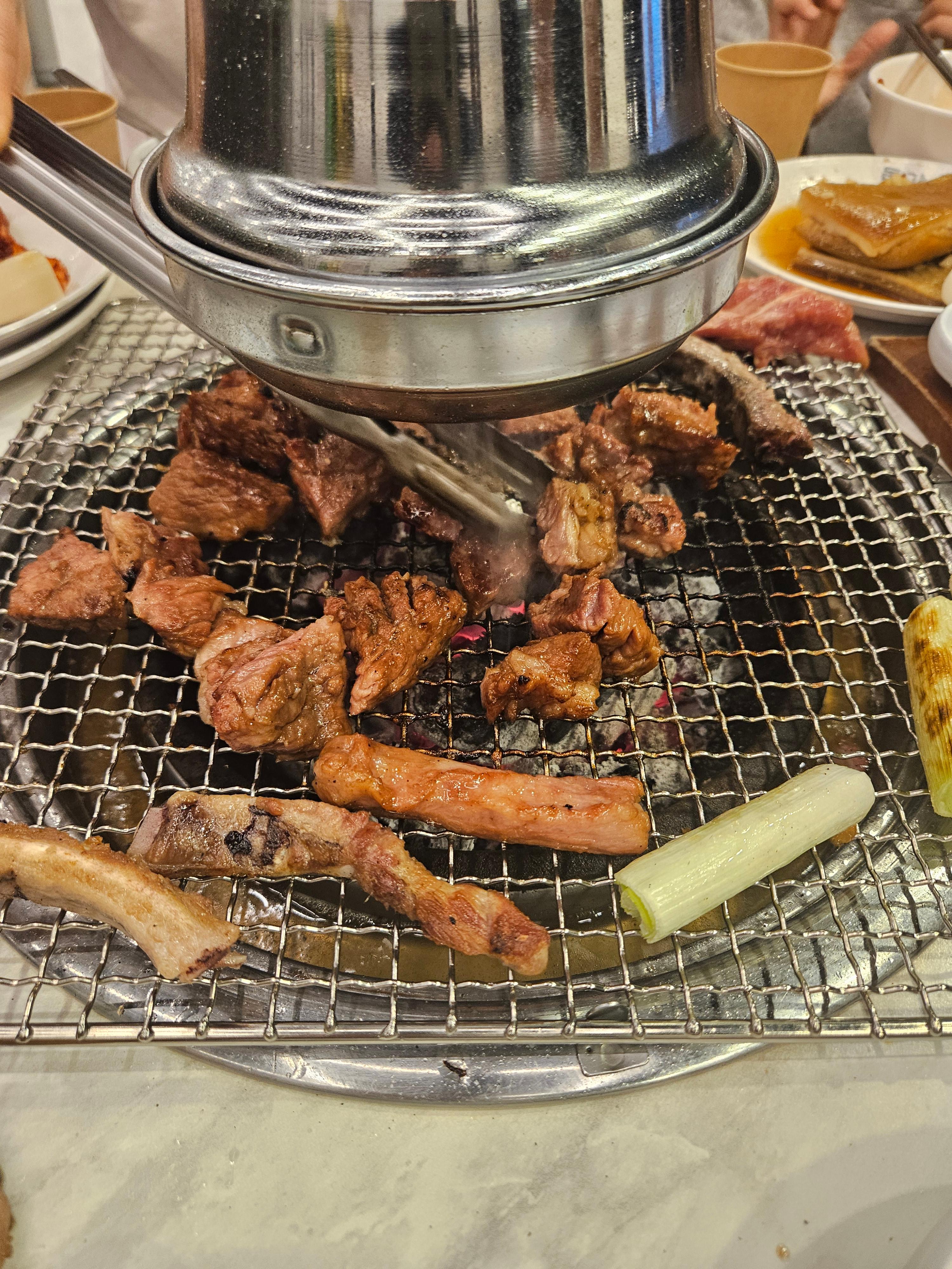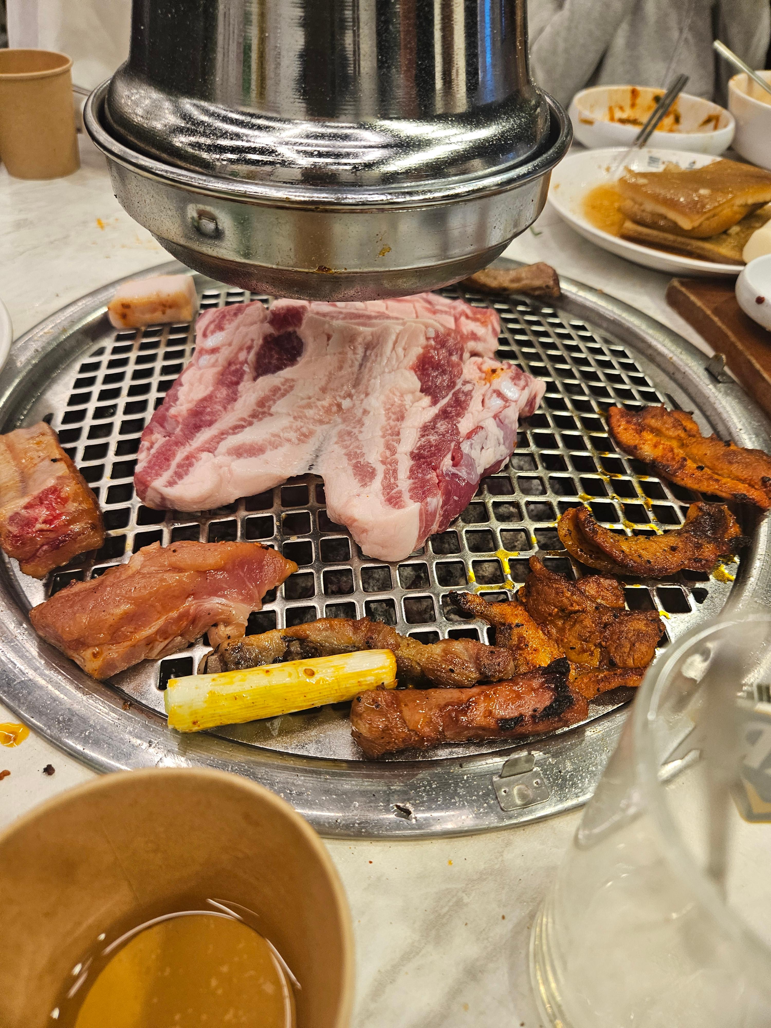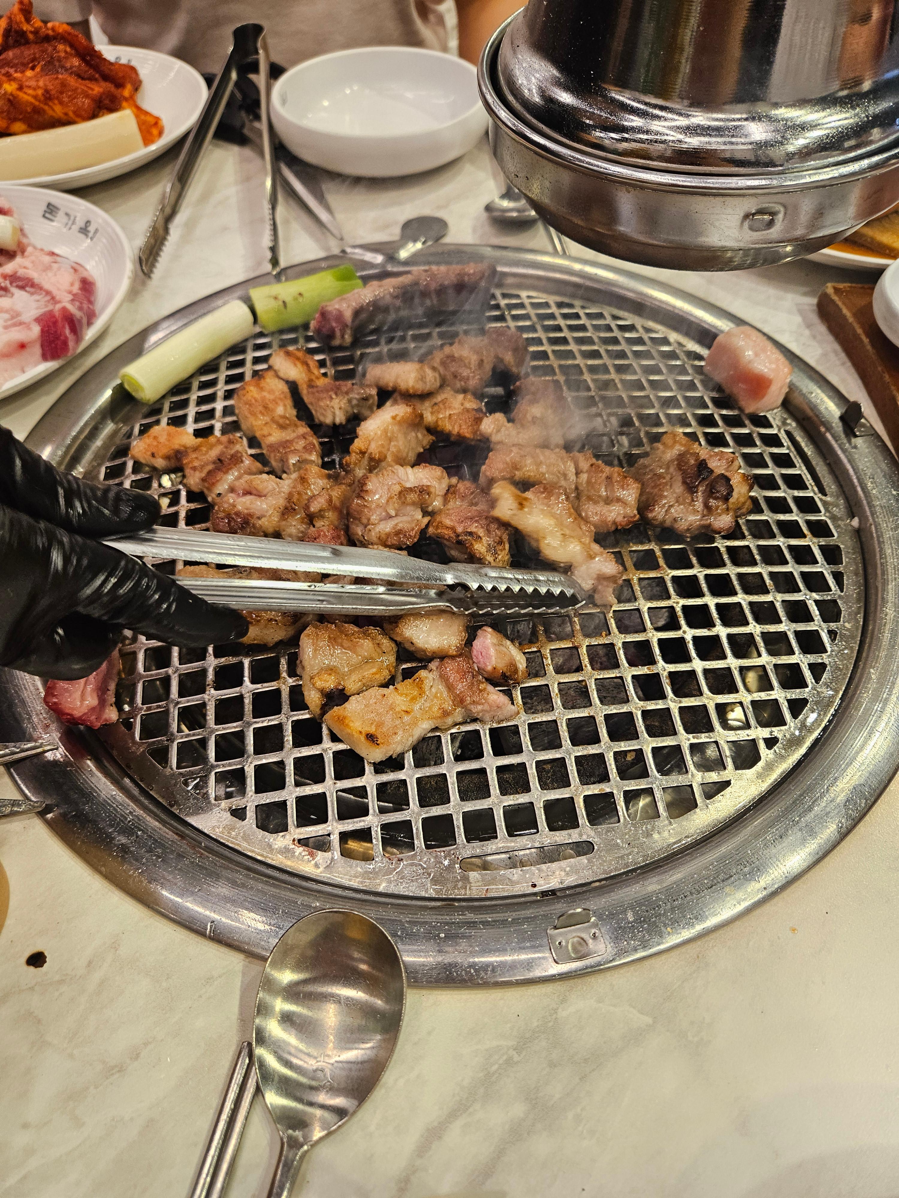 대부분 구워주시는데 바쁜시간에는 가끔 내가 뒤집기도 했다. 양념고기는 불판이 달랐던 것으로 기억. 그래서 처음에 다같이 주문했다가 나중에는 차례차례 주문했었다.