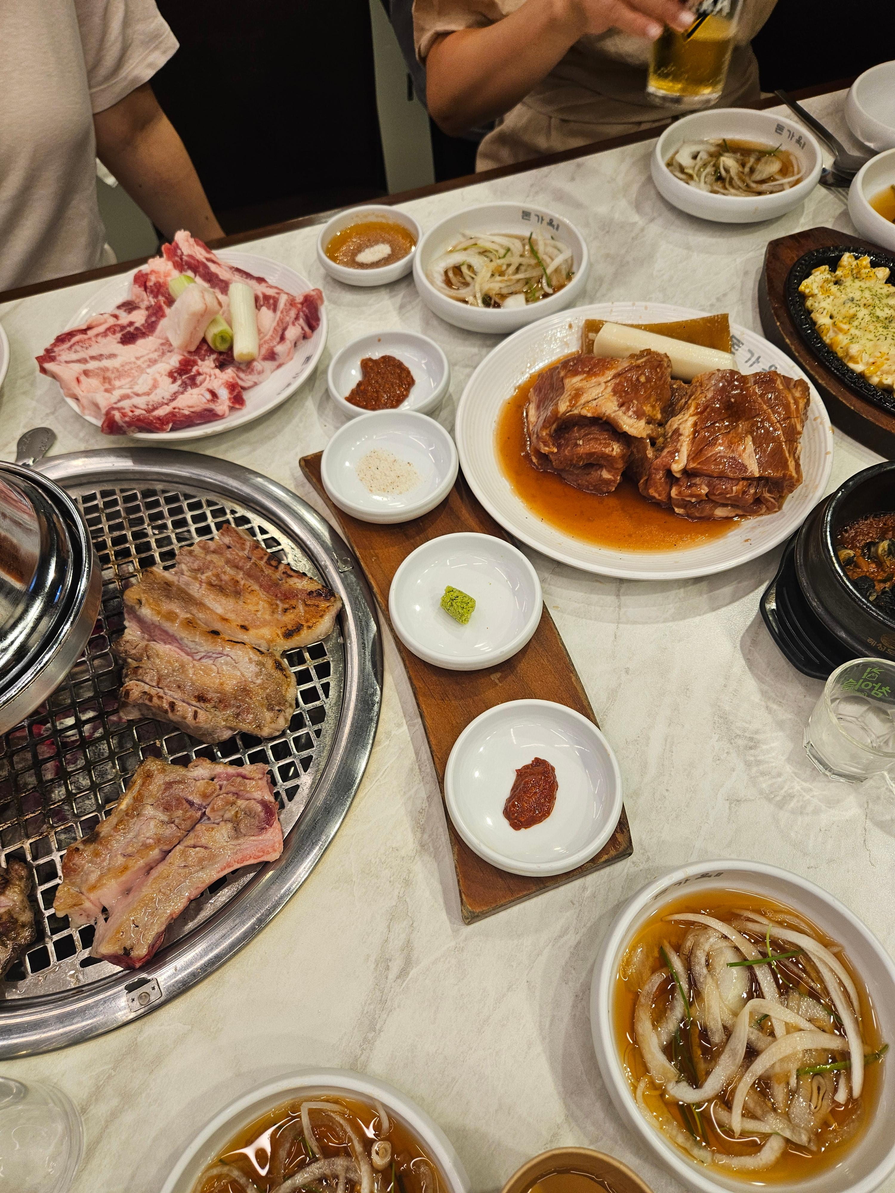 개인적으로는 생고기가 가장 맛있었다. 양념고기도 너무 좋아하지만 고기 품질이 정말 괜찮아서 생으로 먹는게 가장 고기맛이 잘 느껴져서 좋았다. 양념돼지갈비는 사실 뭐 거의 호불호 없는 달달한 양념고기맛이었다.