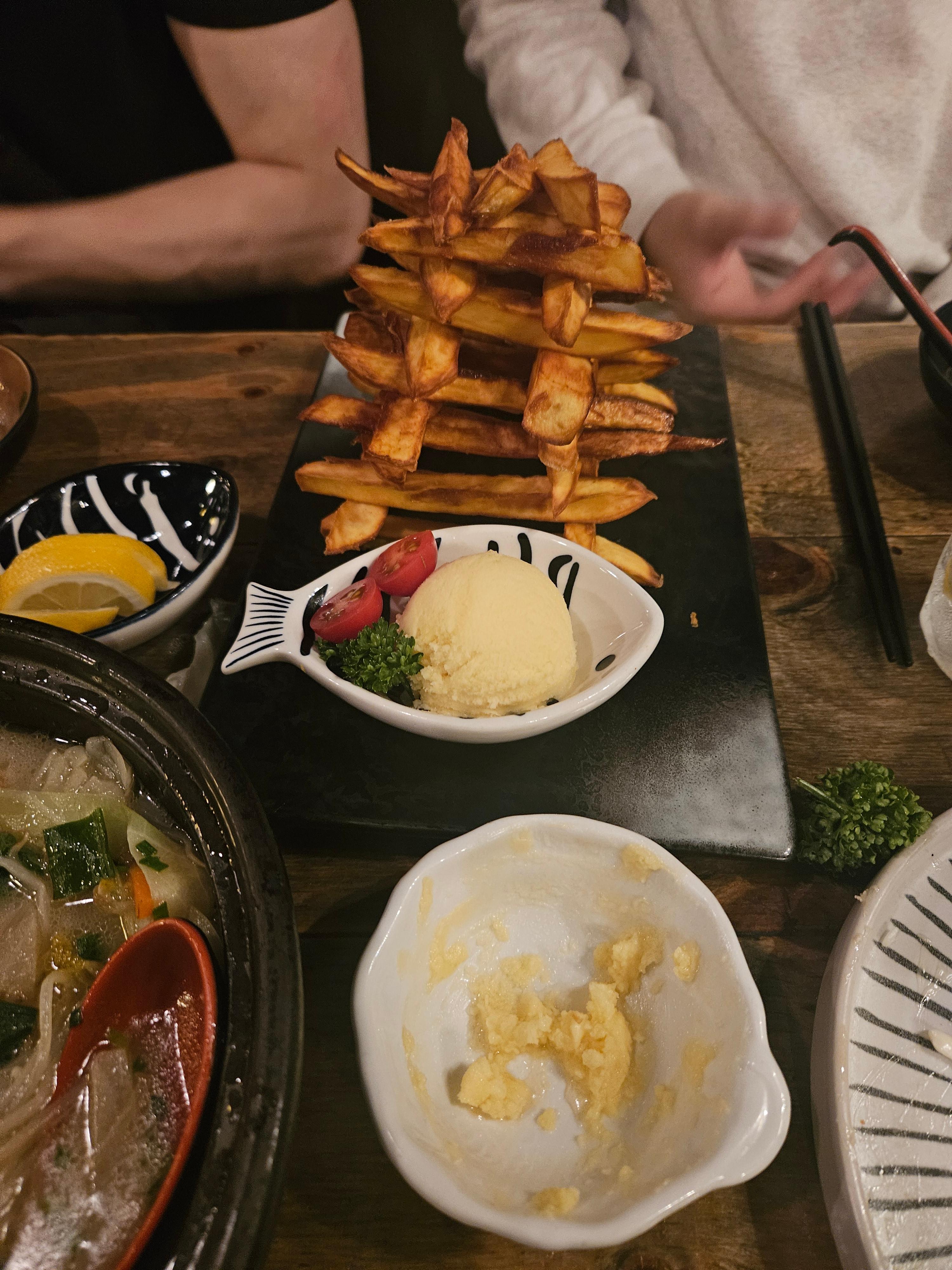 이건 이날도 역시 2번 주문한 허니버터 고구마. 11000원. 고구마를 탑처럼 쌓아주시는데, 두꺼워서 좋고, 특히 저 허니버터가 킥이다. 뜨끈한 고구마를 찍으면 허니허니한 버터가 스르륵 녹으면서 찍히는데, 그렇게 찍어서 먹으면 그렇게 맛있을수가없다. 큼지막하게 허니버터를 올려먹어도 맛있다.