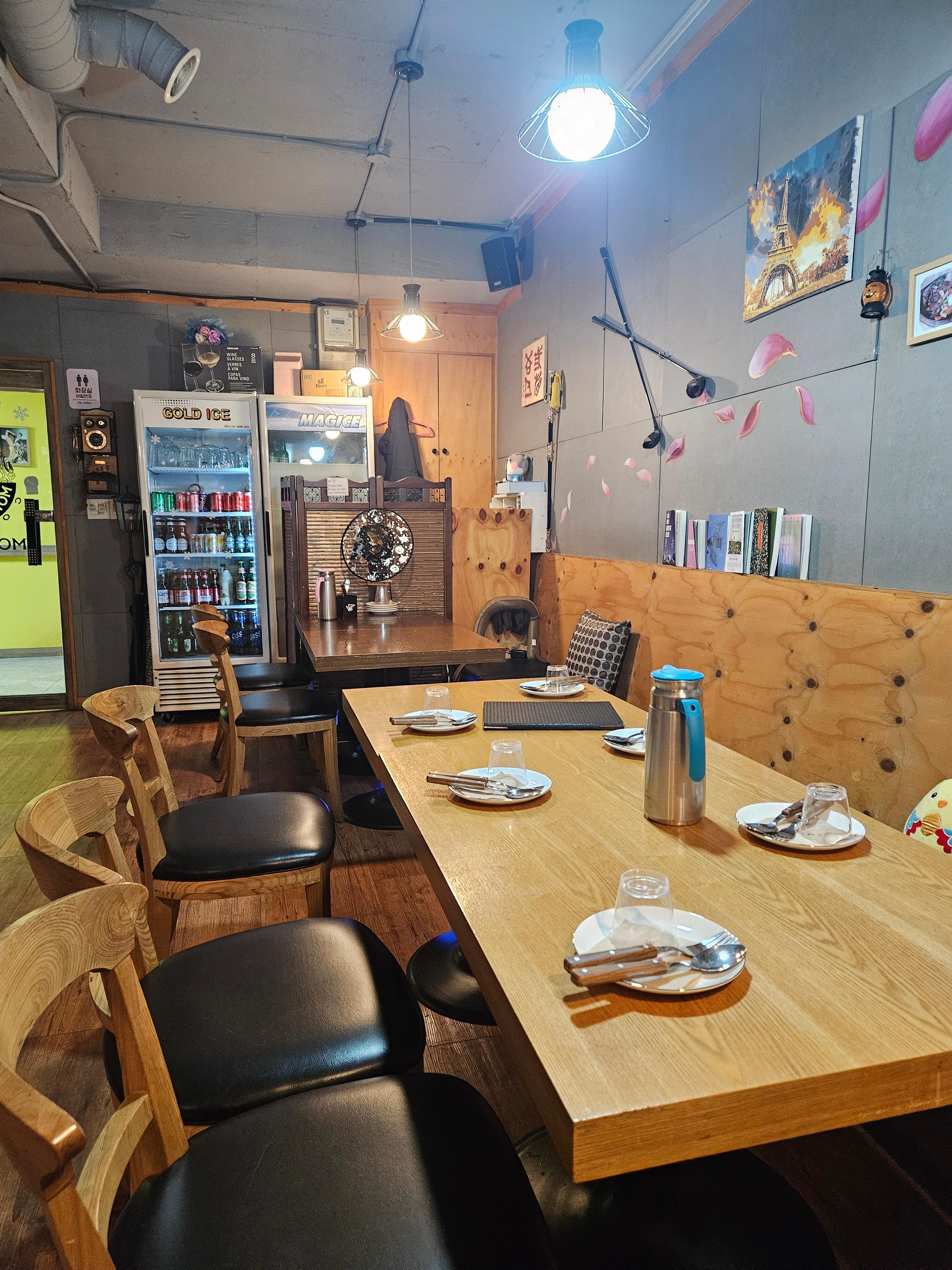 안쪽 자리인데 안쪽에 술도 있고 사장님이 종종 연주도 하시는지 관련 장비들이 있는 것 같다. 뭔가 정식 식당이라기 보다는 사장님 취미생활 느낌이다.