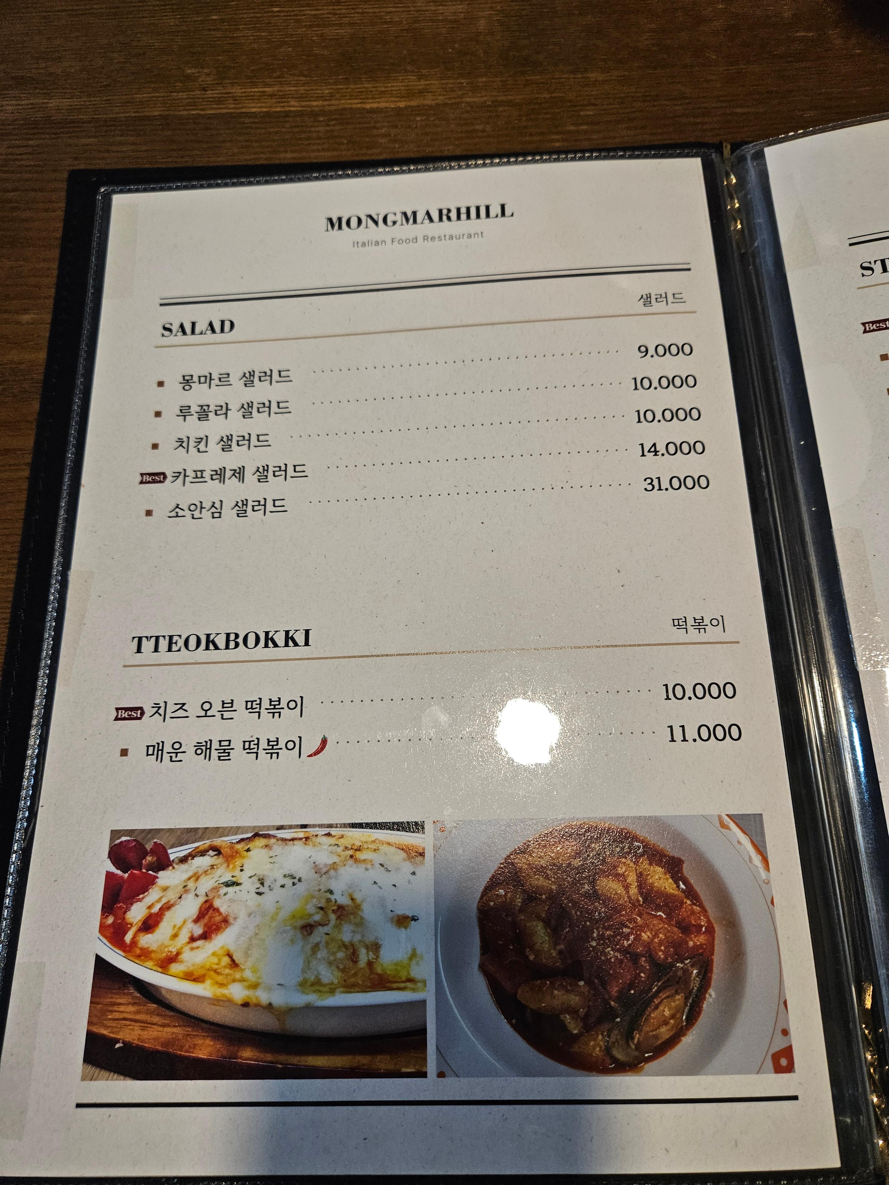 메뉴판. 양식이 대부분이긴 한데, 떡볶이류도 있고 여름에 왔을떄는 빙수도 먹었었다. 커피 마시러 오는 경우도 종종 있다. 식당도 되고 카페도 되는 느낌.