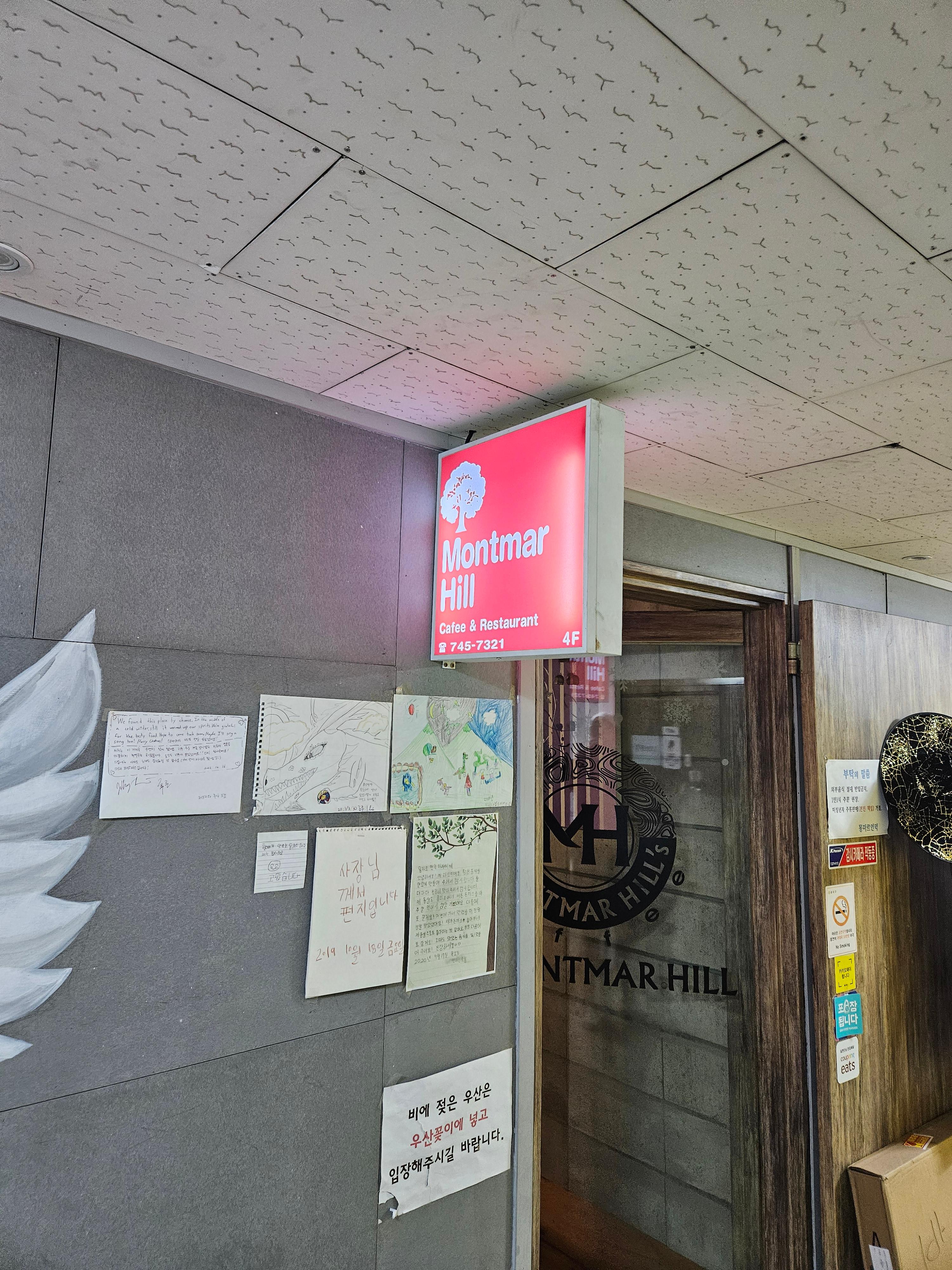 주소 : 서울 종로구 낙산길 196 쌍용아파트 2단지상가 4층(도로에서는 2층) 몽마르언덕