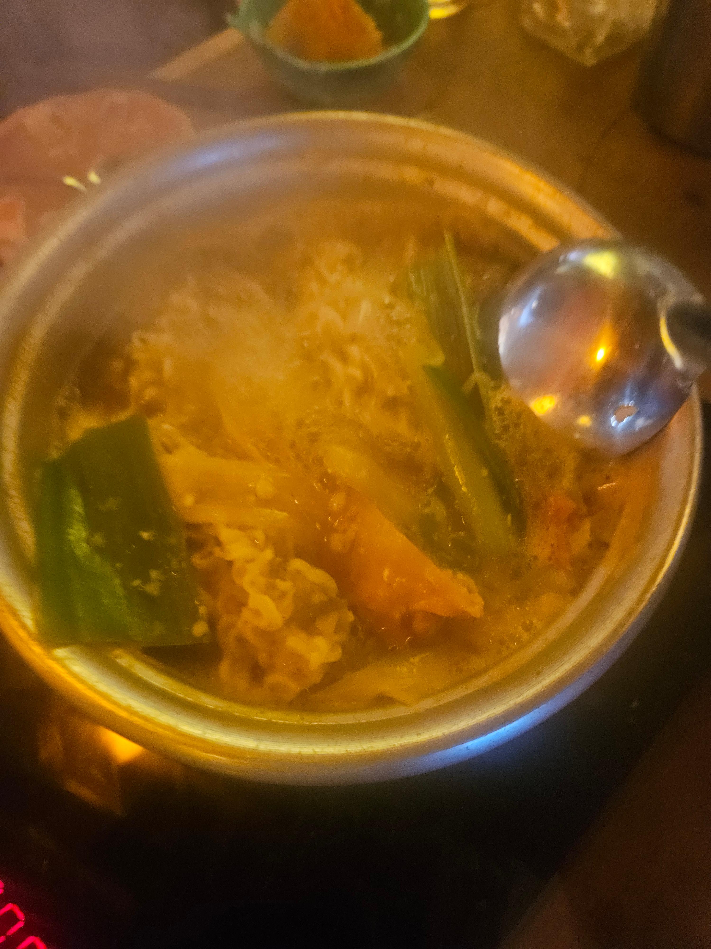 이거는 라면. 라면이 비싸긴 비싼데, 게도 꽤나 많이 들어갔다. 야채도 따로 넣으라고 주신다.
