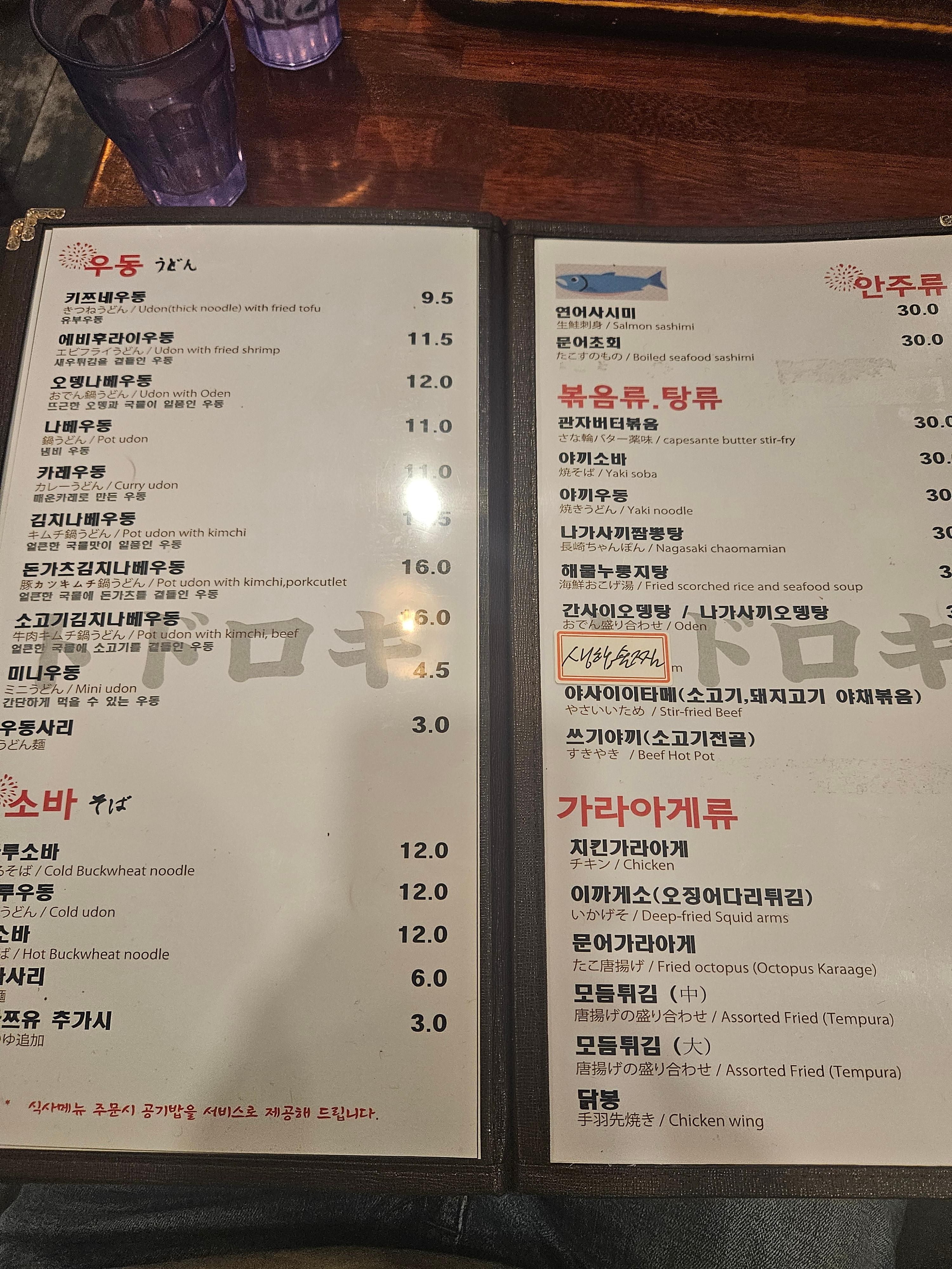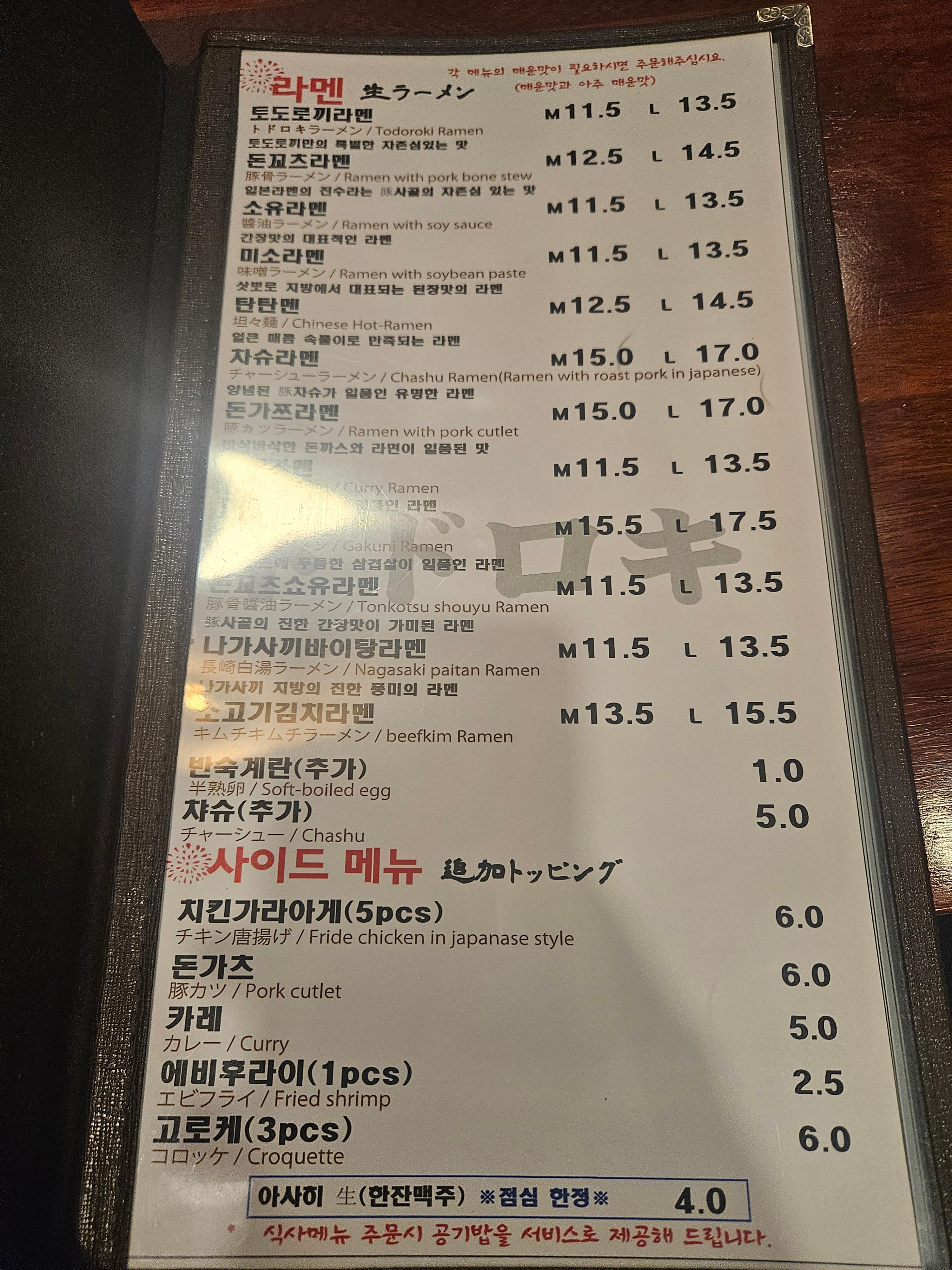 메뉴판. 라멘도 꽤 잘 나가는 메뉴. 하지만 개인적으로는 여기 오면 무조건 돈까스 주문.