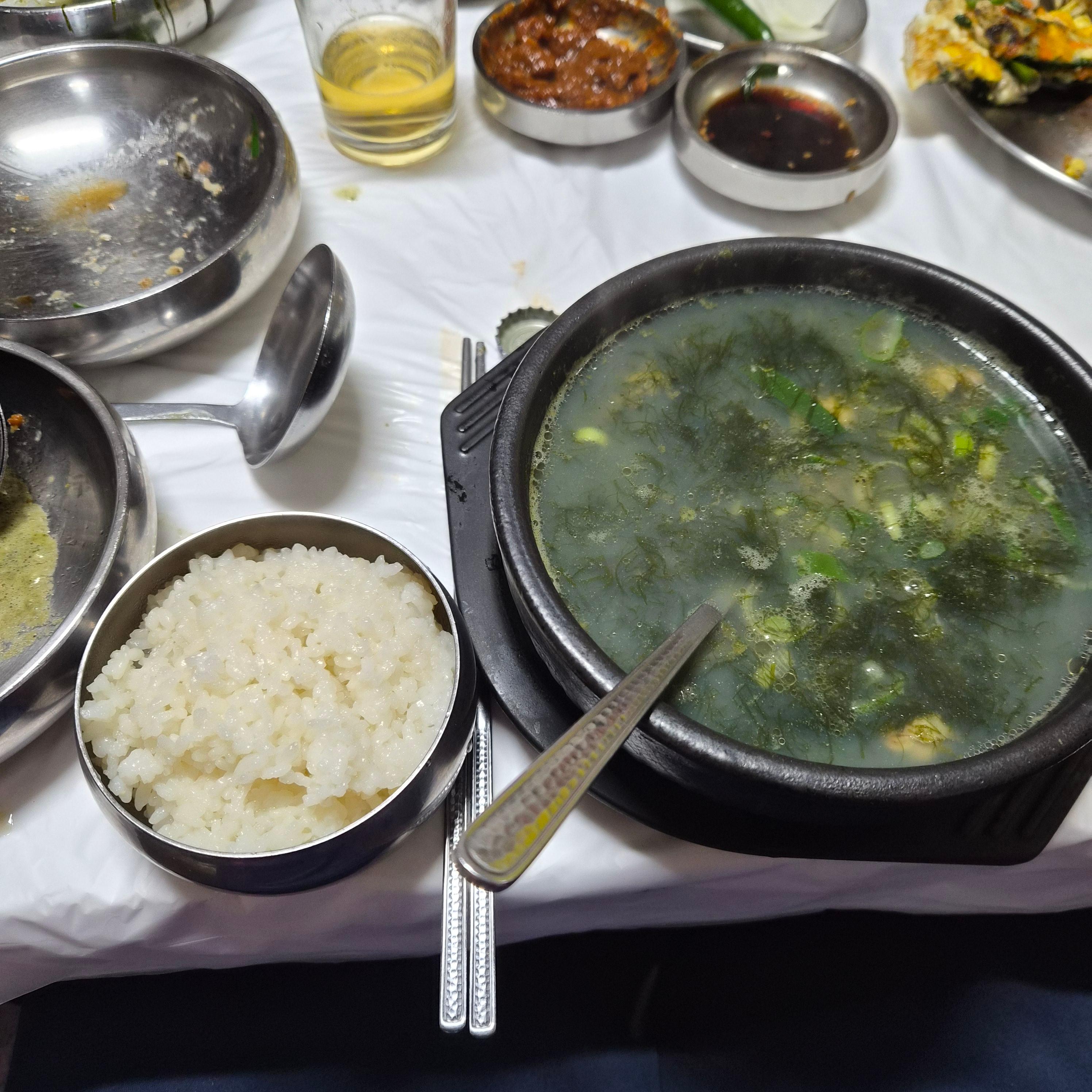 이게 매생이굴국밥. 매생이의 그 부들부들한 식감과 짭쪼름함이 굴이랑 만나서 맛있다. 굴국밥만 먹어도 맛있는데 매생이가 들어가니 더 맛있었다. 확실히 매생이는 굴이나 소라나 다슬기같은거랑 잘어울리는 것 같다.