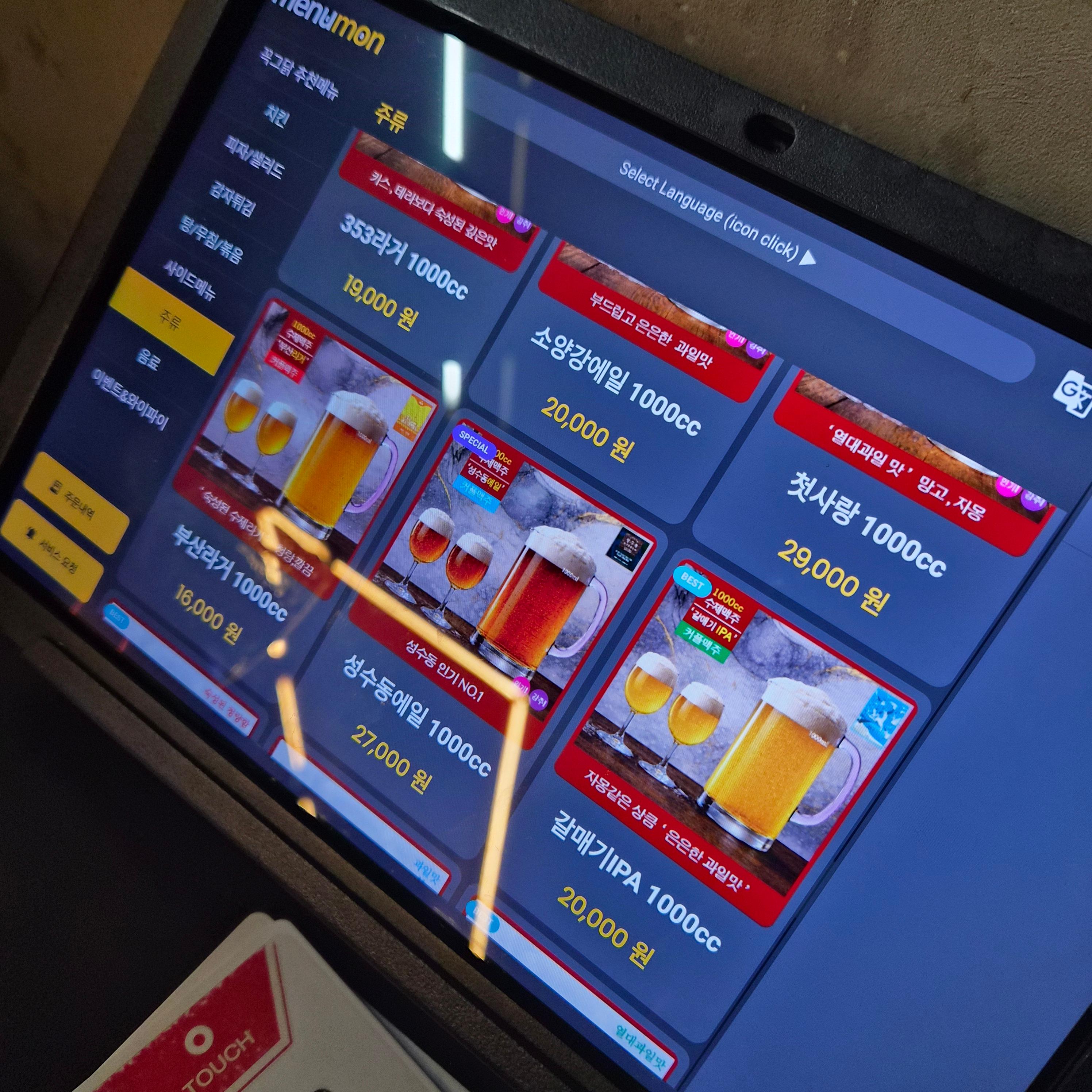 맥주는 주문해도 되지만 원하는 잔을 들고 원하는 맥주에 카드를 찍어서 따르면 된다.