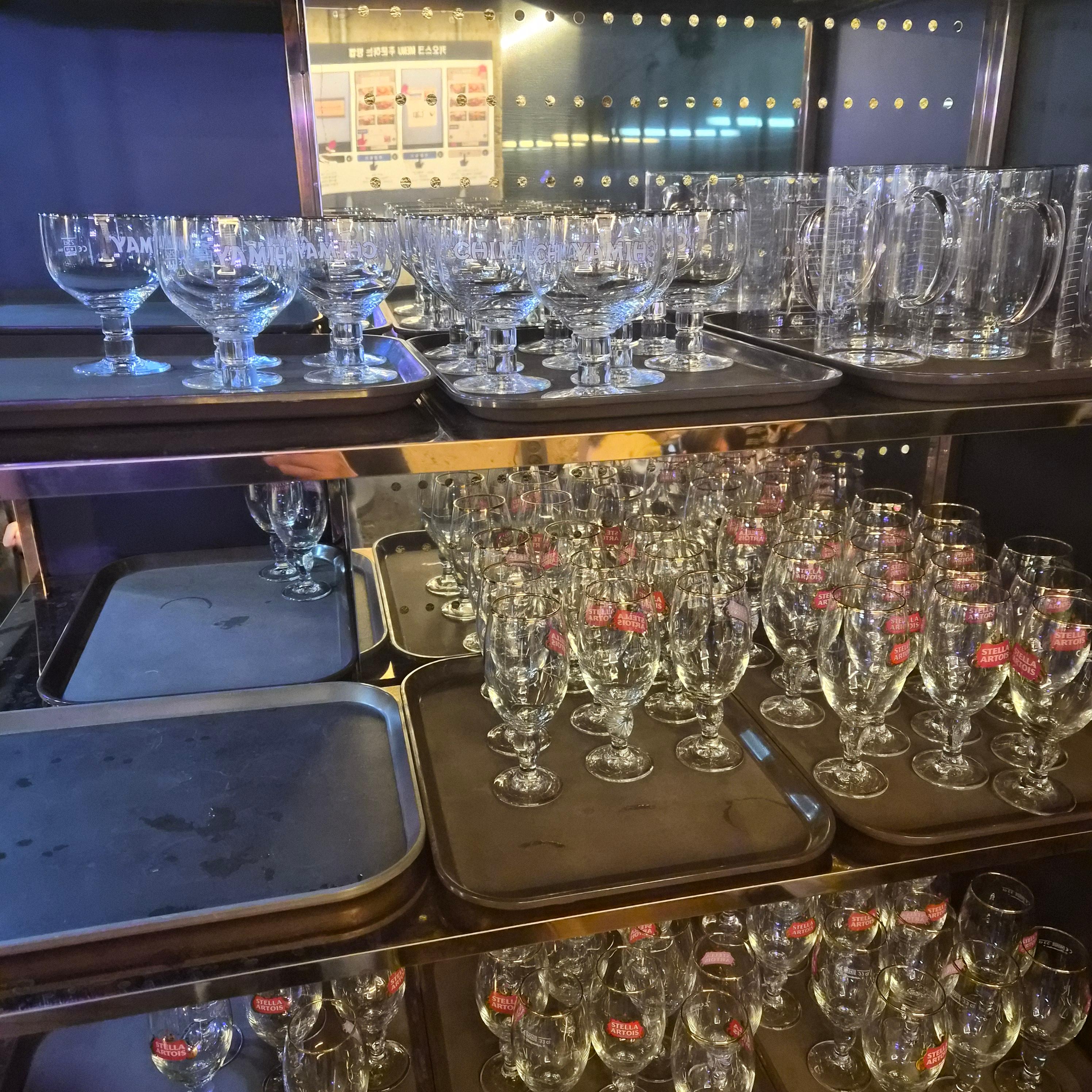 지하로 들어오자 마자 반겨주는 다양한 맥주잔들과
