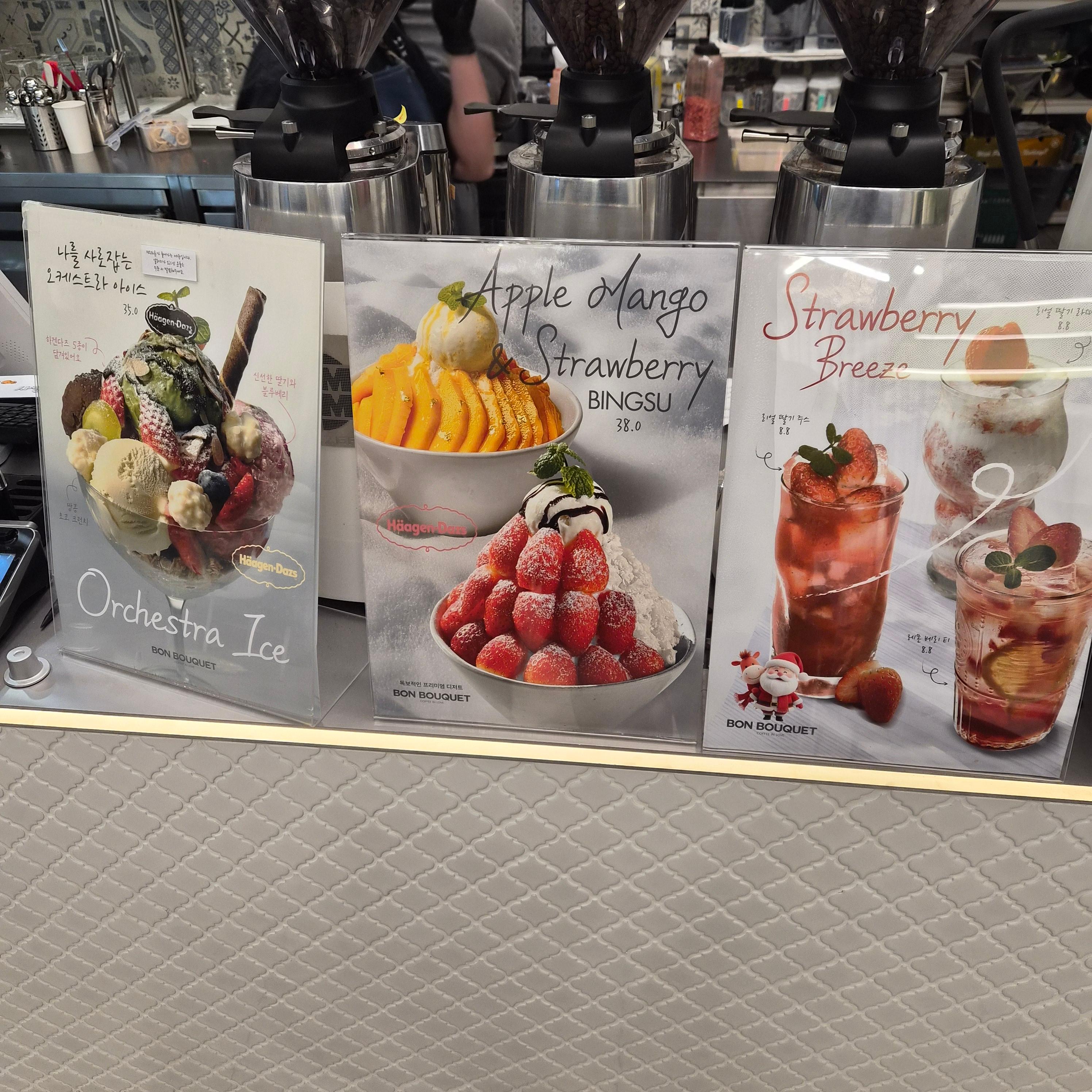 메뉴가 굉장히 다양하다. 과일을 이용한 메뉴가 많고, 하겐다즈 아이스크림도 맛이 여러개 있다.