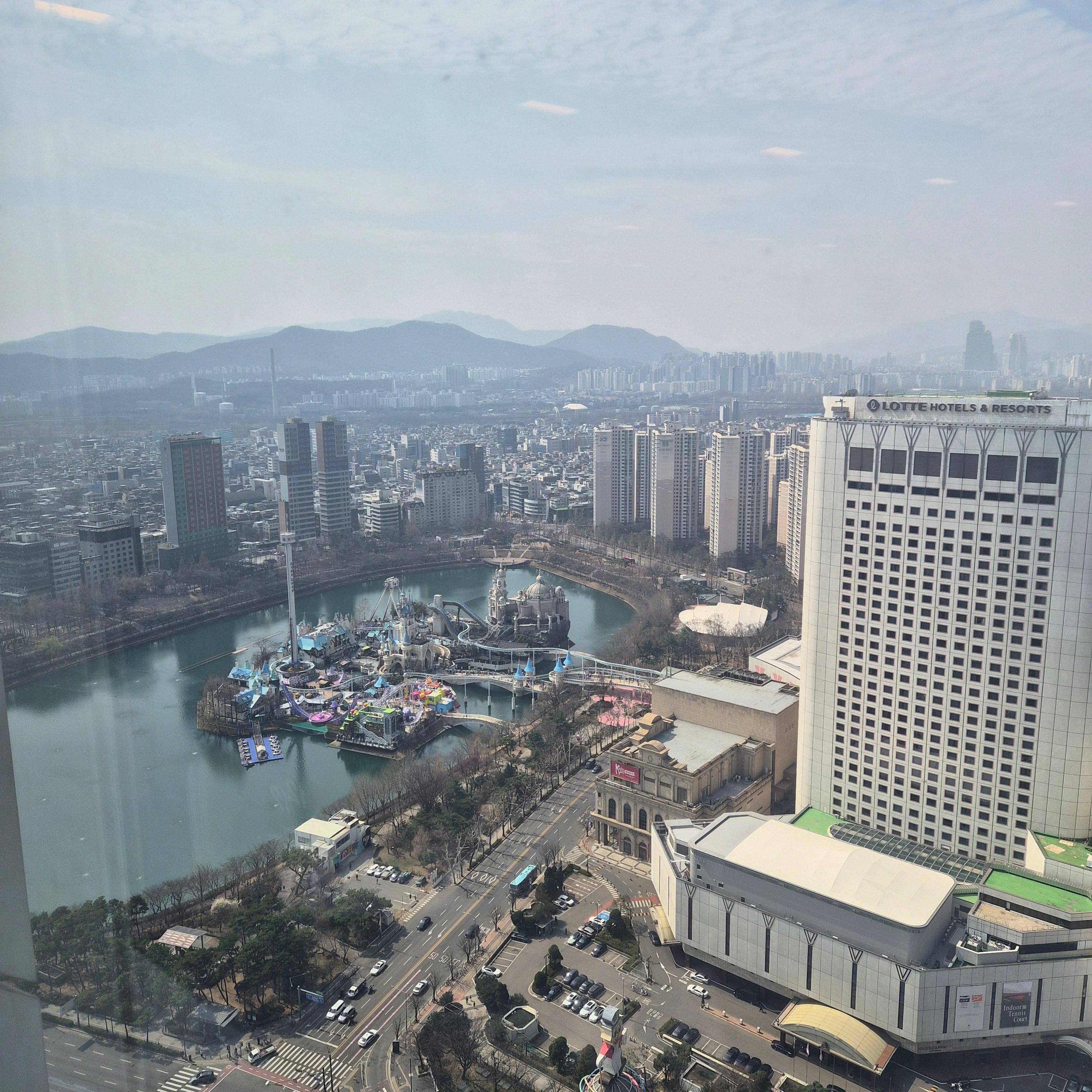 한강과 석촌호수(롯데월드)가 모두 보이는 뷰. 실제로 보면 뷰가 멋있기는 하다.