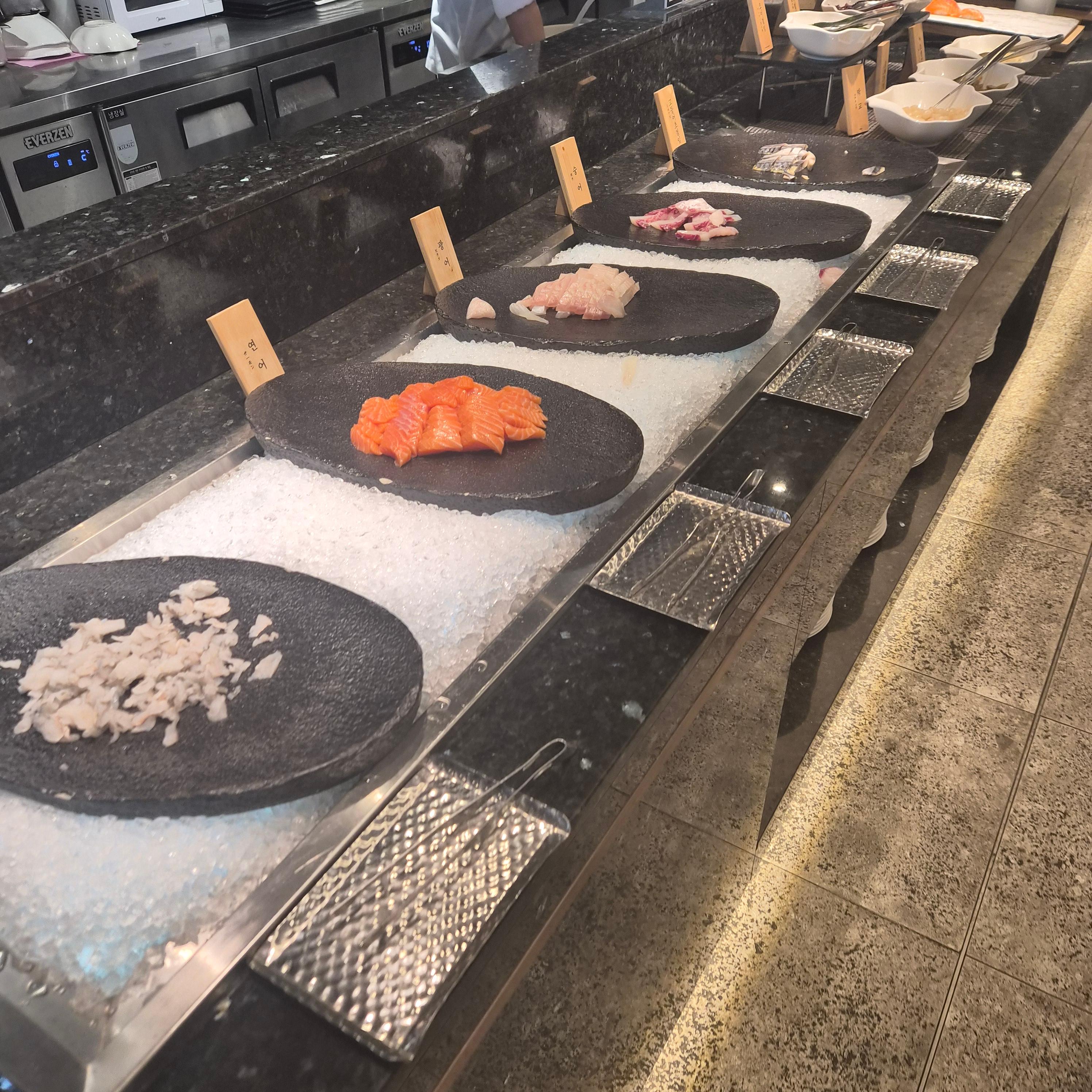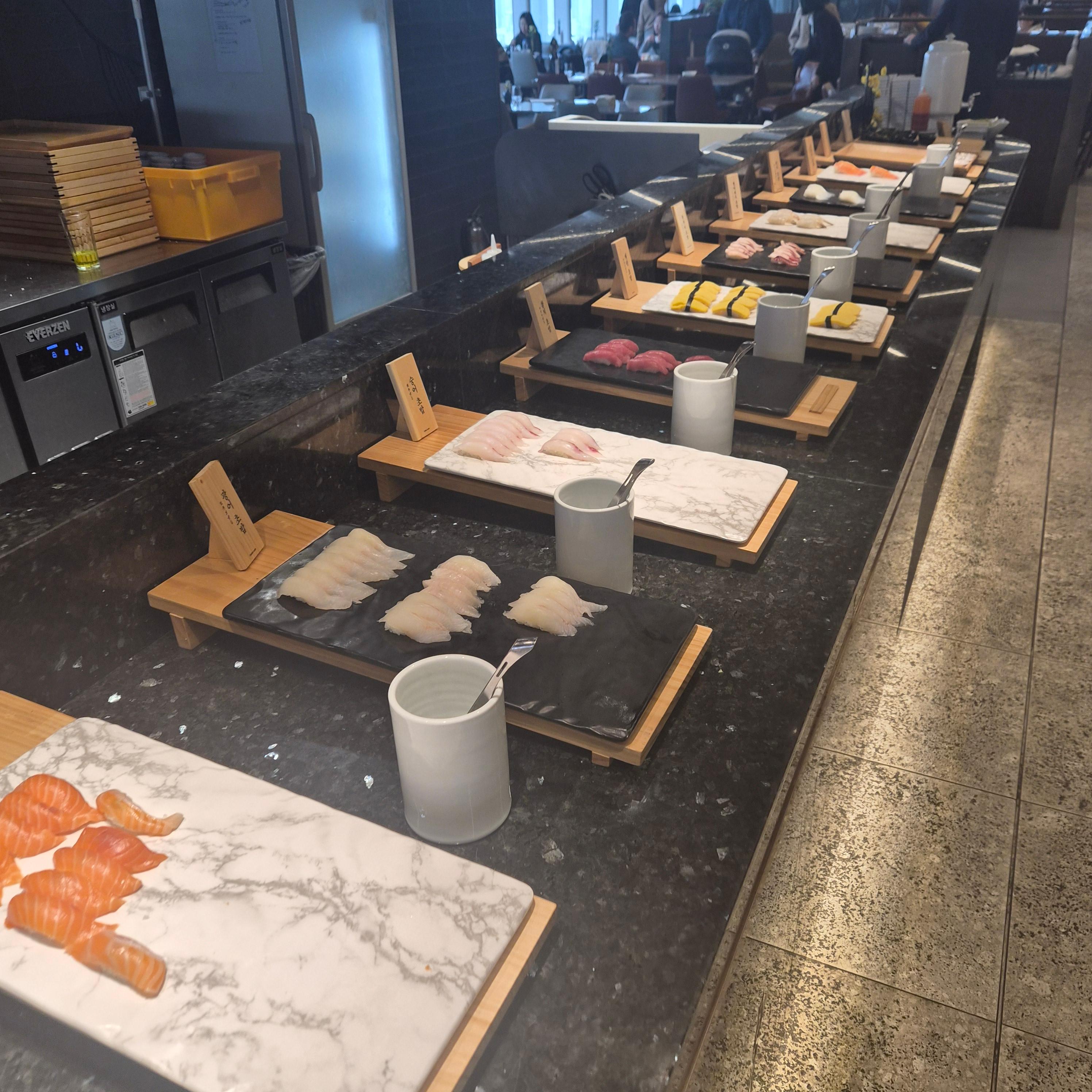 나가면서 찍은 해산물 코너. 이것 말고도 조금 더 있었다. 계란초밥도 꽤 괜찮았던걸로 기억하고, 아귀간도 있긴 한데 그것도 그냥 맛보기에는 나쁘지 않았다. 참치초밥은 꽤 먹을만 해서 맛있게 먹었다.