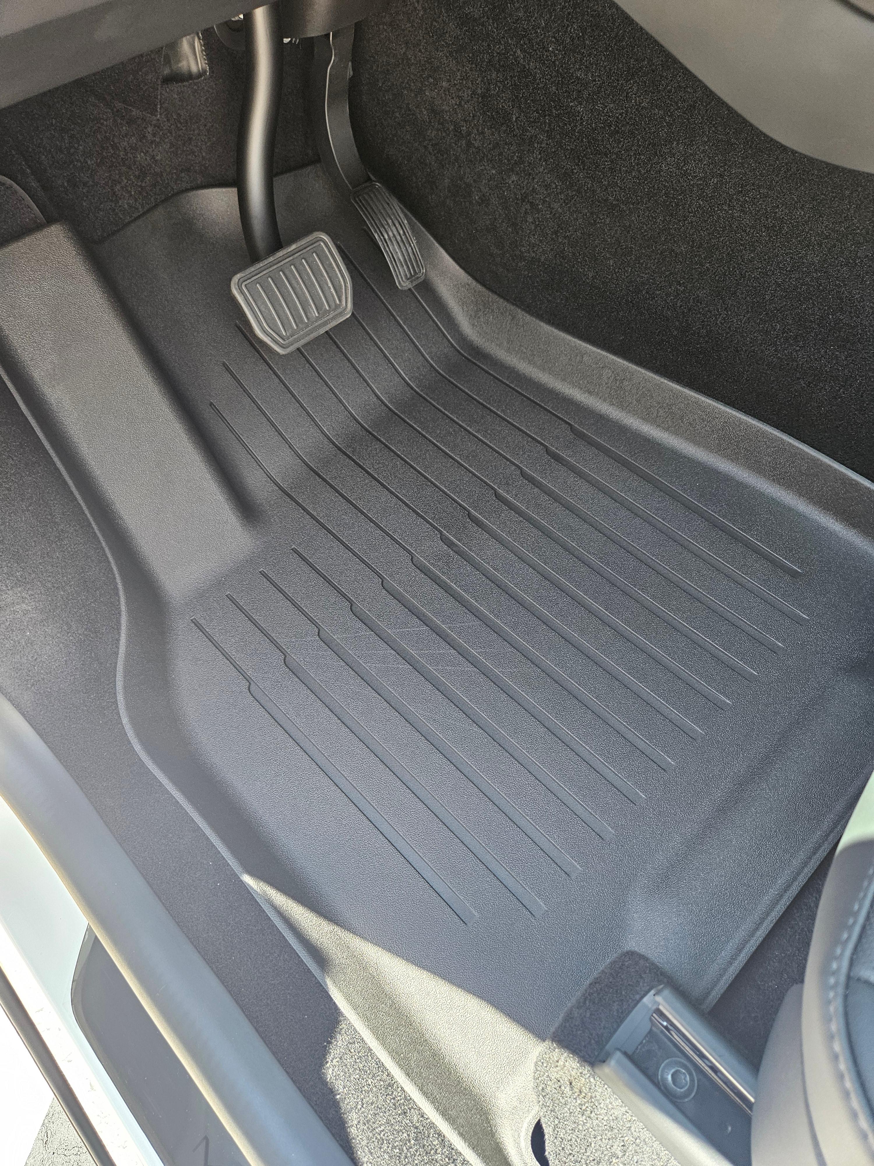 기본으로 주는 카페트. 그 위에 플라스틱? 으로 된 카매트를 설치했다. 좀 낑기긴 하는데 문제는 없다. 테슬라 용품중에 제일 만족. 나중에 청소하기도 편하다.